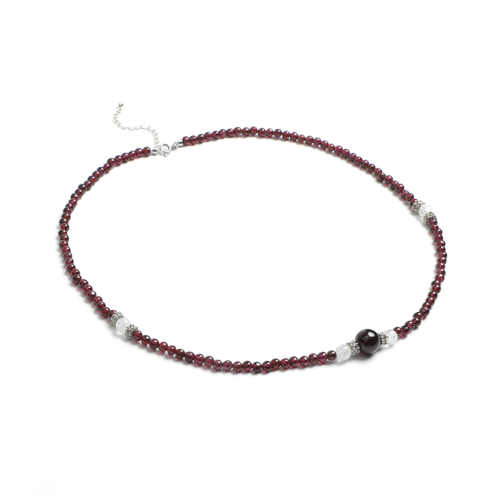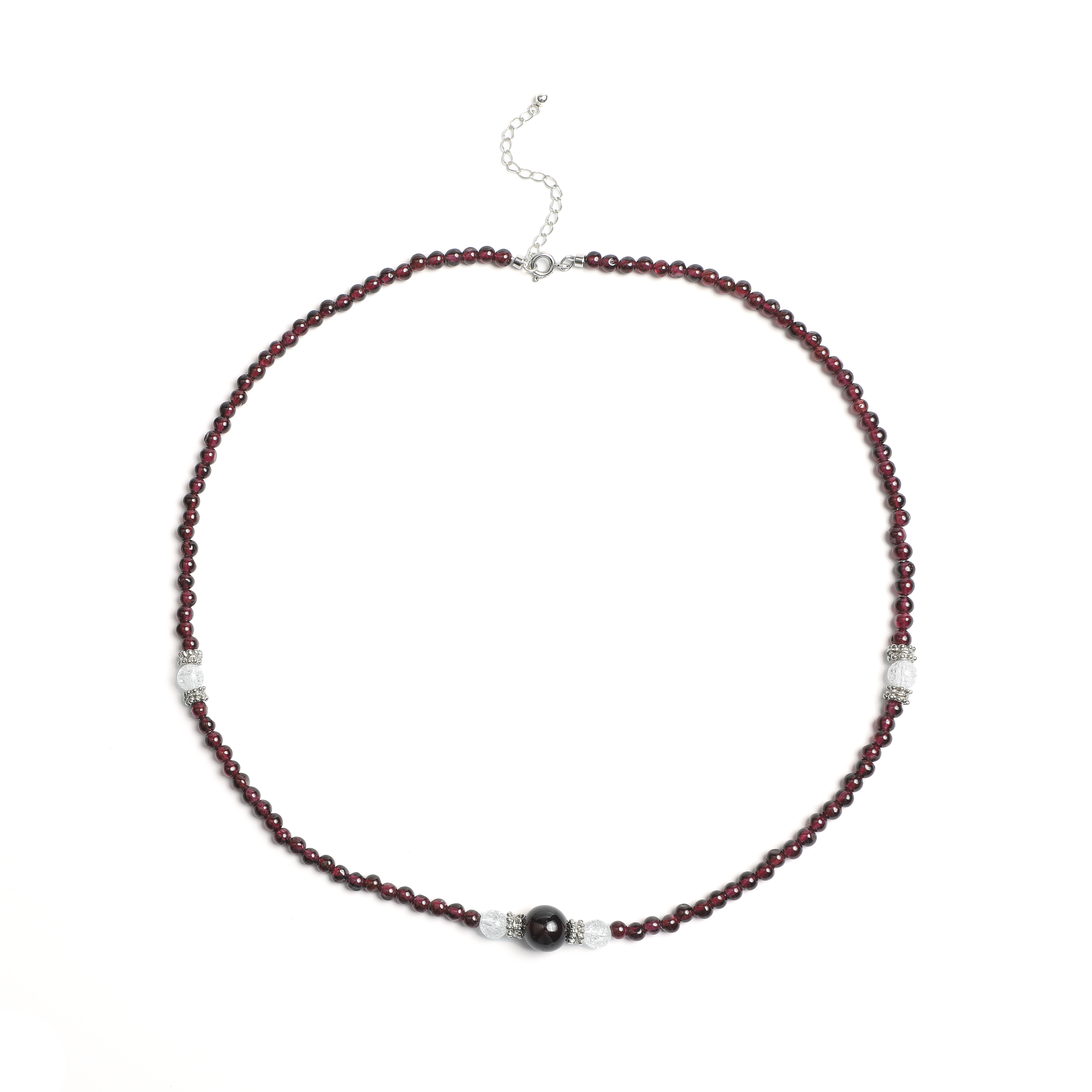 This 1970s Japanese necklace features genuine garnet beads in deep red tones, showcasing the natural crystal formations typical of this era. Each garnet bead displays unique mineral patterns and color variations, reflecting the organic beauty valued in Japanese craftsmanship. The piece represents the warm aesthetic of 1970s Japanese jewelry design, with hand-strung beads that demonstrate careful selection. Natural garnet is traditionally associated with vitality and emotional balance. Minor vintage signs are present, confirming its authentic history. Suitable for both casual and formal occasions, this unique piece adds earthy elegance to any collection. Each necklace is individually sourced from specialized vintage collections.