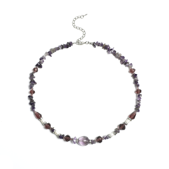 This 1970s Japanese necklace presents natural crystals in their original mineral formation. Each stone maintains its organic structure, reflecting the period's appreciation for unaltered natural beauty. The crystals display subtle variations in transparency and surface texture, characteristic of stones sourced during this era. Some associate this type of crystal with mental clarity and energetic balance. Gentle aging signs may be visible upon close inspection. This distinctive piece transitions easily from daytime to evening wear. As a unique find in our collection, it represents Japanese artisans' respect for natural forms.