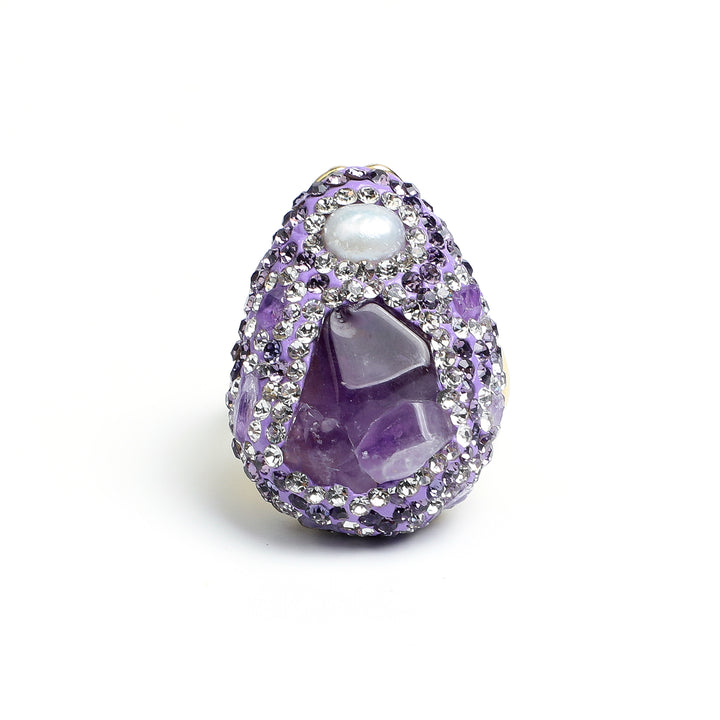 An Asian artist's architectural vision finds precise expression through master artisans' geometric craftsmanship, embodying ARTLUMINNA's philosophy of uniting crystalline structure with modern design. This striking ring features a Uruguayan amethyst precisely carved into clean geometric forms that highlight the stone's deep purple hue and natural crystal lattice. The amethyst's architectural silhouette is enhanced by precisely set titanium elements that frame the stone with structural elegance, creating a captivating dialogue between organic mineral beauty and human design. Senior artisans employed advanced stone-carving techniques to achieve the sharp, clean lines while preserving the crystal's inherent energy flow. The geometric amethyst is traditionally considered to enhance mental clarity and spiritual balance, its structured form symbolizing order and harmony. Worn as a statement of modern sophistication, this ring accompanies individuals in maintaining focused intention and creative precision in their daily pursuits. The exclusive creation carries identification AL-RG-012.