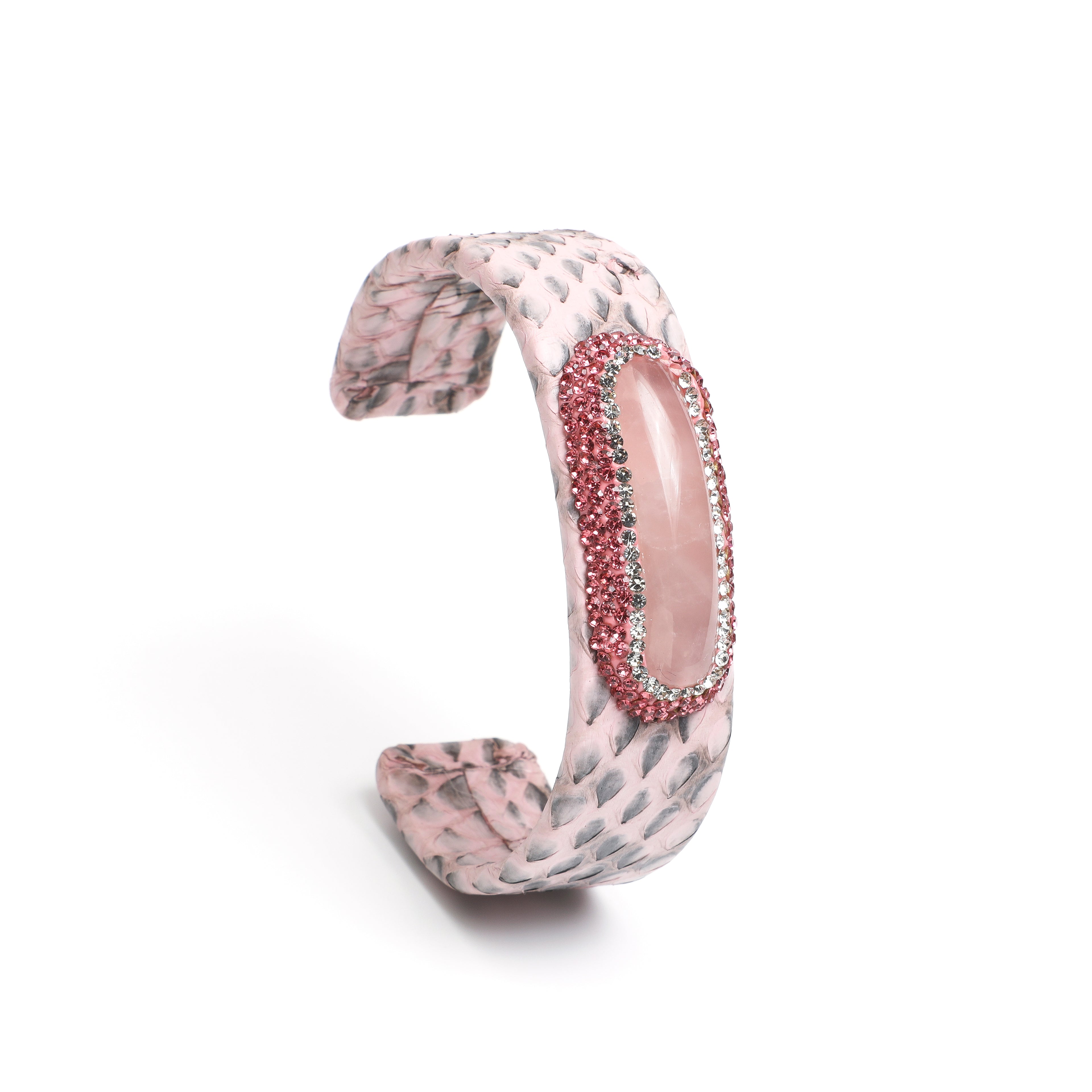 亚洲设计师对宁静的诗意思考通过工匠大师的专注工艺得以升华呈现,体现ARTLUMINNA融合有机优雅与情感共鸣的品牌哲学。这款精美手环以马达加斯加修长粉水晶为主角,精心手工镶嵌于柔软天然皮革之上,宛如光之河流徜徉于艺术画布。水晶的温柔透光性如晨露般捕捉光线,修长形态唤起连绵流动的优雅意象。皮革的细腻纹理提供温暖基底,在矿物纯净与触感舒适间建立微妙对话。资深工匠运用特殊技艺,使水晶宛若轻盈浮于皮革背景之上,达成元素间的完美和谐。传统认为此作品散发无条件的爱与情感平衡,陪伴现代女性穿梭于专业场合与亲密聚会之间 - 在都市生活中激发宁静自信与诗意从容。此独家创作持有编号AL-BG-001。