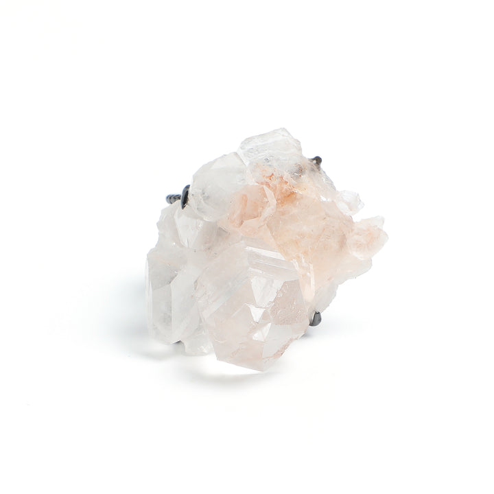 his extraordinary ring presents a rare Diamond Rose Calcite specimen from Hubei's Daye region, a geological wonder unseen for decades in its completely natural state. The stone's delicate rose-pink base serves as a canvas for robust crystal terminations that rise like a mineral garden in full bloom, with each crystalline structure growing in its pure, unaltered form. The specimen's unique formation represents decades of natural geological processes, preserved without any human intervention to maintain its absolute authenticity.