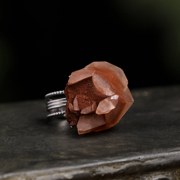 ARTLUMINNA unveils the Daye Rose Calcite Ring, sourced from the globally celebrated mineral fields of Hubei's Daye region—renowned among collectors for its unique geological formations. This rare rose-calcite, shaped by nature over decades without any human intervention, is meticulously hand-set into a ring that mirrors a blossoming flower bud. Its delicate peach-pink hues are believed to inspire heart-centered energy and emotional rebirth. Wear it during meditation, creative work, or as a daily signature piece to remind yourself of nature’s patient artistry. Let this ring be a personal token of growth and gentle transformation.