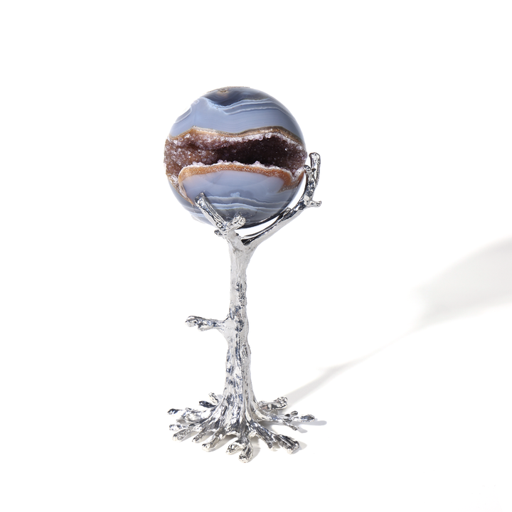 ARTLUMINNA proudly presents this extraordinary geological marvel from the agate-rich deposits of Mexico - a spherical masterpiece that nature has sculpted into a beaming, joyful countenance. The specimen's unique formation features a naturally occurring "smiling" aperture that reveals a breathtaking crystal-lined interior, creating the delightful illusion of a celestial being sharing its good fortune. Selected from countless agate spheres for its exceptional personality and vibrant energy, this piece embodies the perfect harmony between geological artistry and uplifting symbolism that defines ARTLUMINNA's curation philosophy.