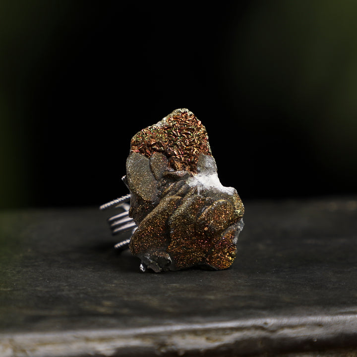 Wear this ring to important occasions where its steady presence accompanies key decisions, or in daily work where the flowing golden mountains at your fingertips offer continual inspiration. Let this piece, imbued with the wisdom of the earth, become a trusted companion in both your professional and creative pursuits.