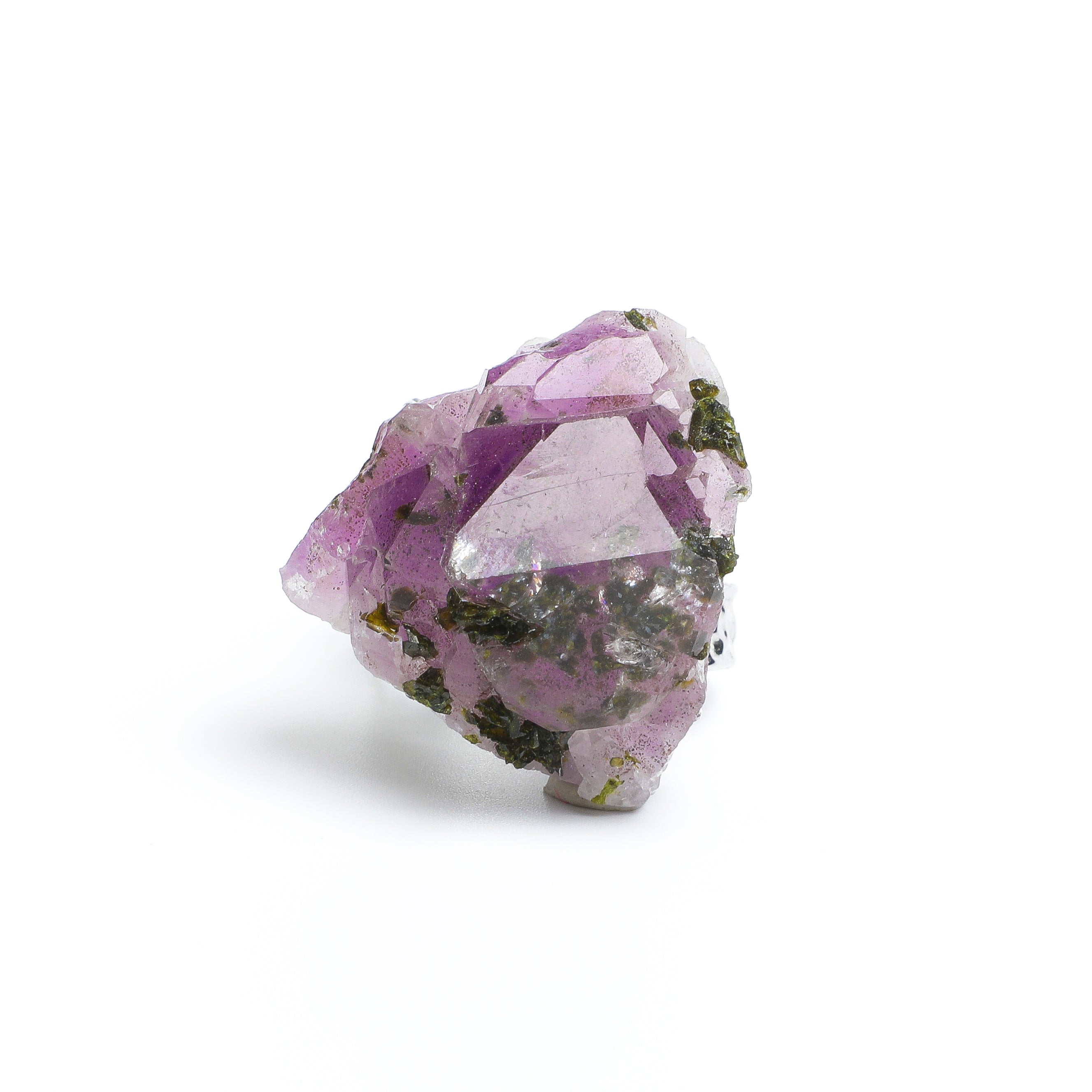 ARTLUMINNA excavated this amethyst and epidote combination from the Swiss Alps, where soft purple and deep green crystals collide and cooperate like an arctic garden in bloom. Under light, the dual-colored minerals exhibit collaborative radiance and raw natural texture. Discreetly hand-fixed in understated silver, the symbiotic form is completely preserved, as if wearing the romance of geological collaboration. Through multiple refinements, this piece transforms metamorphic coexistence into a symbol of wisdom, enhancing intellectual dialogue and conceptual depth.