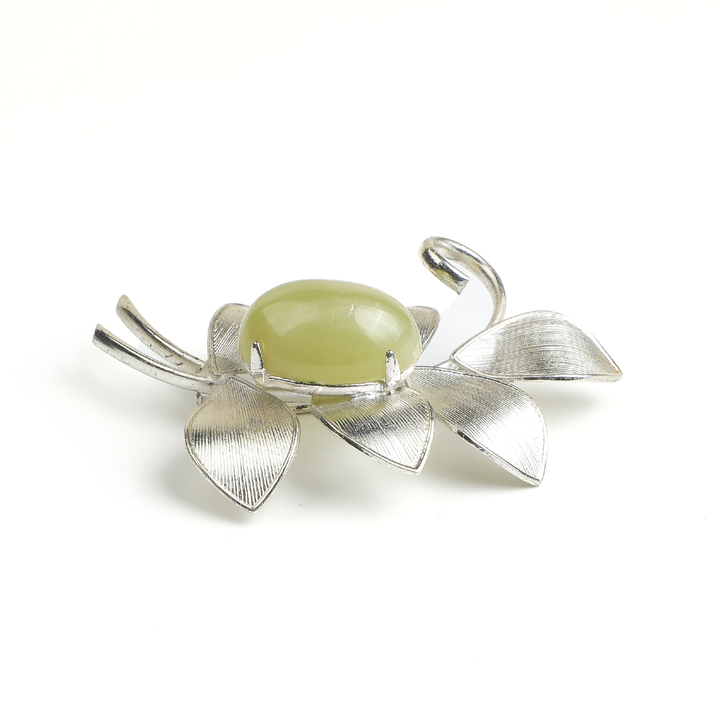 In Eastern tradition, olive jade symbolizes wisdom and serenity, while the leaf design carries the beautiful meaning of everlasting life. This brooch accents suit lapels or cheongsam fronts, lending elegant charm to both traditional and contemporary attire. Each jade's unique character and the artisan's carving marks together tell an aesthetic story refined through time.