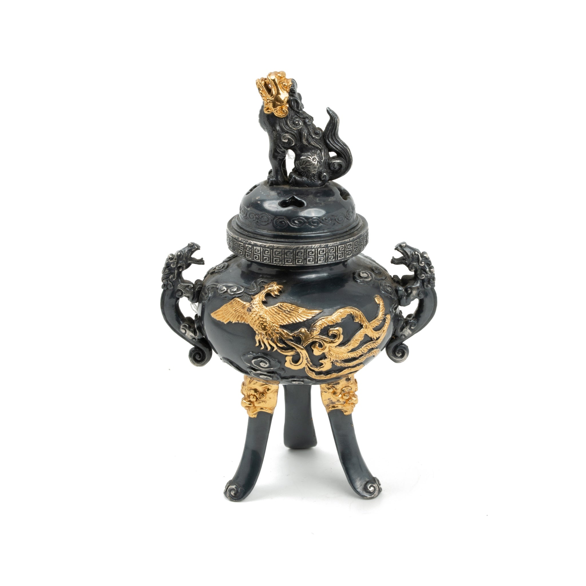 Functional yet decorative, this censer enhances tea ceremonies or study spaces with its elegant presence. The twin phoenixes symbolize harmony and blessings, the mythical beasts represent protection, and the three legs signify stability. This well-preserved unique piece embodies artisan spirit and period aesthetics, worthy of collection.