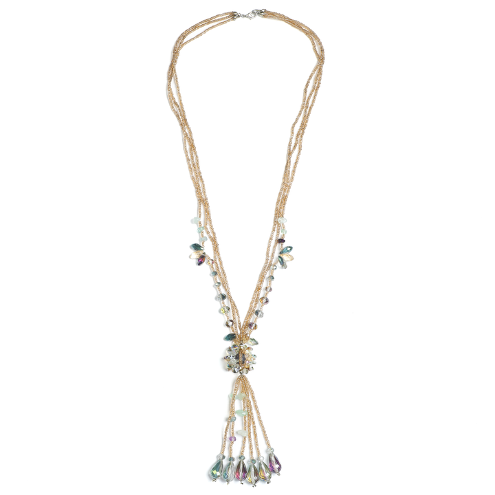 Multi-Color Crystal Flower Knot Tassel Necklace