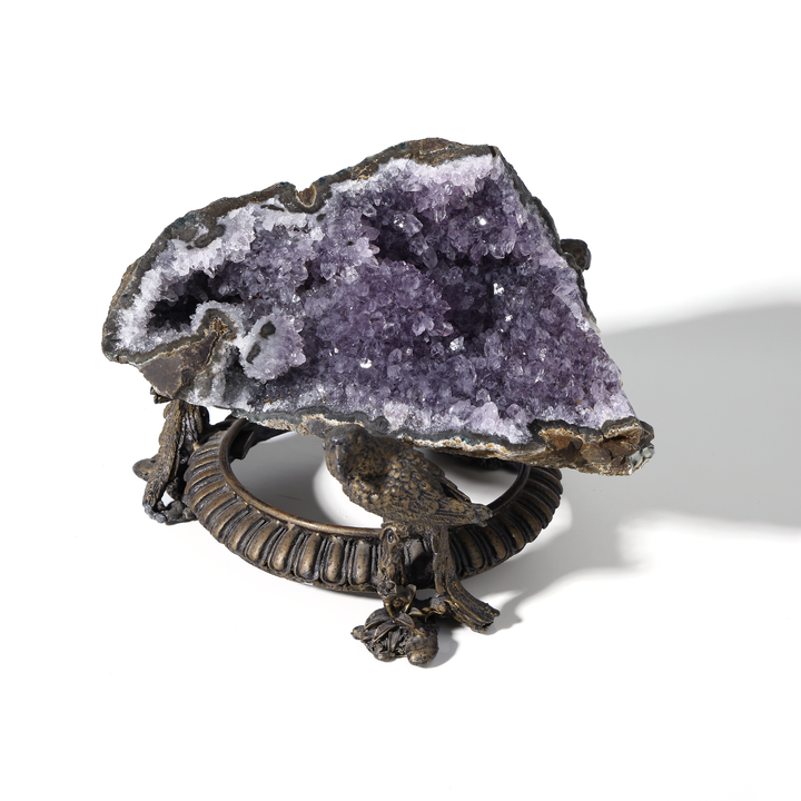 ARTLUMINNA presents this heartwarming crystal formation from the mineral-rich deposits of Madagascar, elegantly displayed on a custom-designed sculpture featuring a family of birds encircling their nest. The specimen's delicate rose quartz crystals form a natural nest-like structure, their soft pink hues symbolizing the warmth and security of a loving household. The surrounding bronze birds, expertly crafted by our collaborating artisans, represent family members in harmonious unity. This complete artistic composition transforms the geological specimen into a profound representation of domestic harmony.