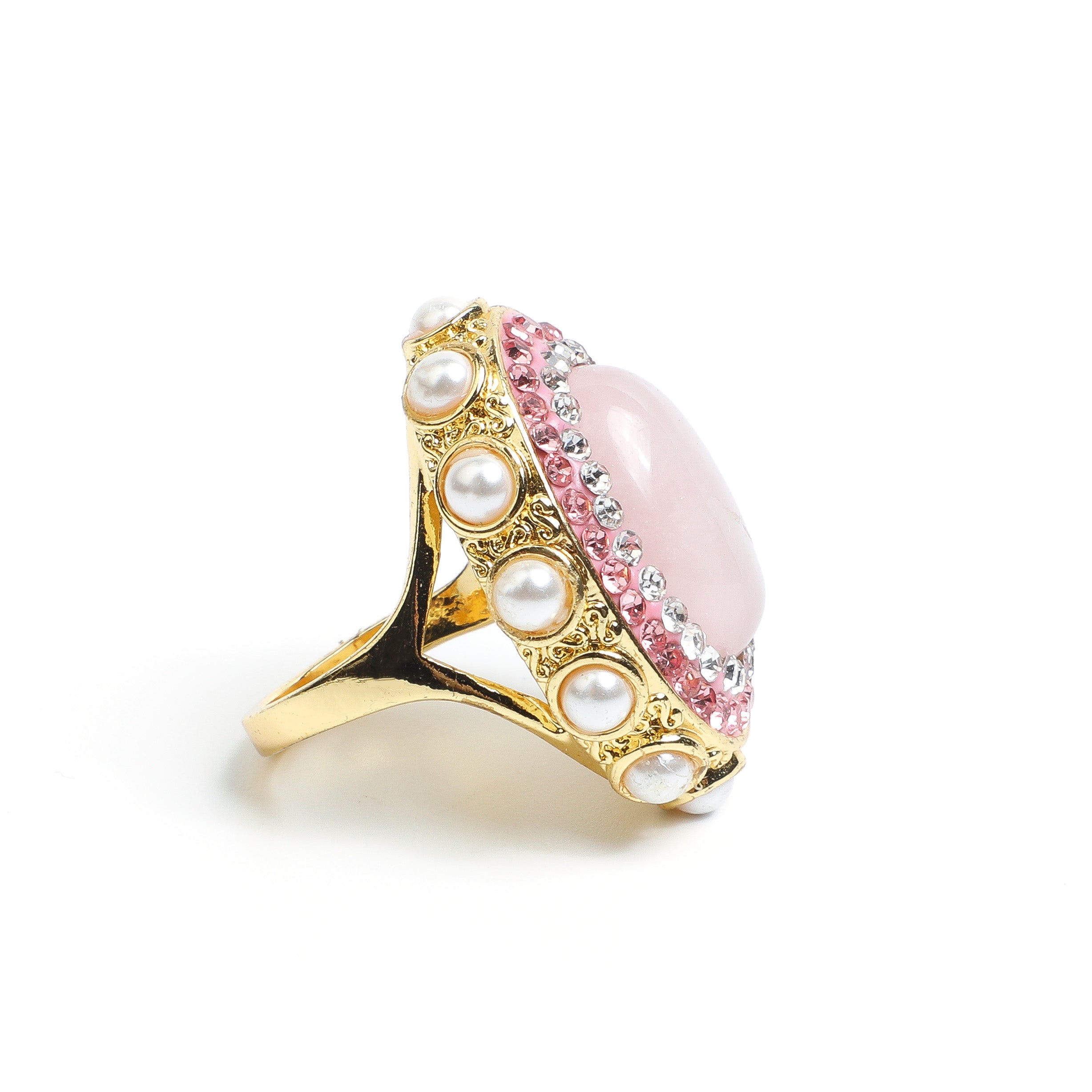 Pink Crystal Elegance · Oval Pink Crystal Pearl Ring AL-RG-050