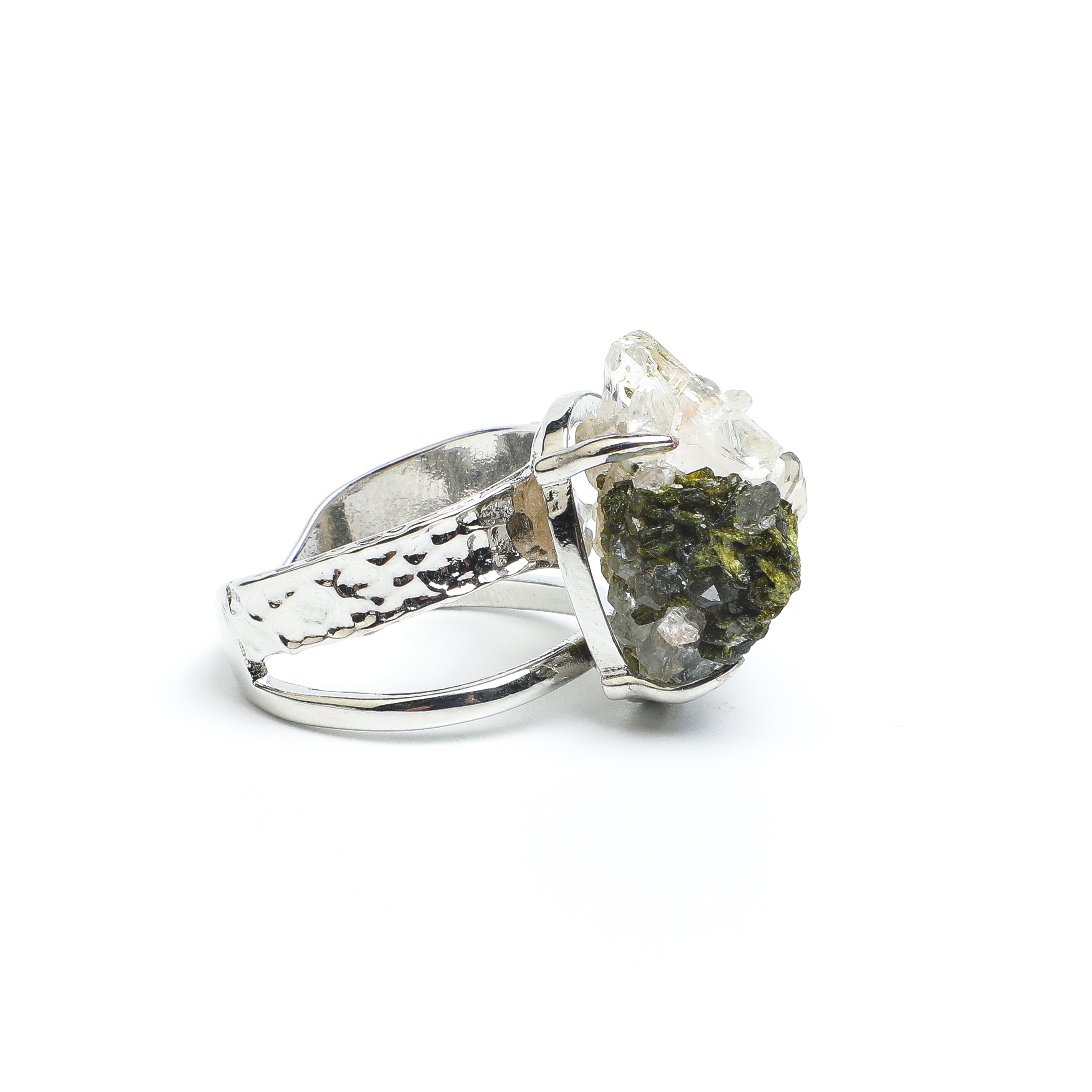 This extraordinary ring presents a multi-colored calcite specimen from Daye, Hubei, where nature's artistry creates a living prism effect within a perfectly preserved microcosm. The stone remains completely untouched by human intervention—a geological marvel that demonstrates nature's ability to craft breathtaking beauty through purely organic processes. Delicate crystalline structures function as nature's own optical instrument, capturing and refracting light into spectral displays, while the internal formations reveal a complete, self-contained universe suspended in crystalline perfection.