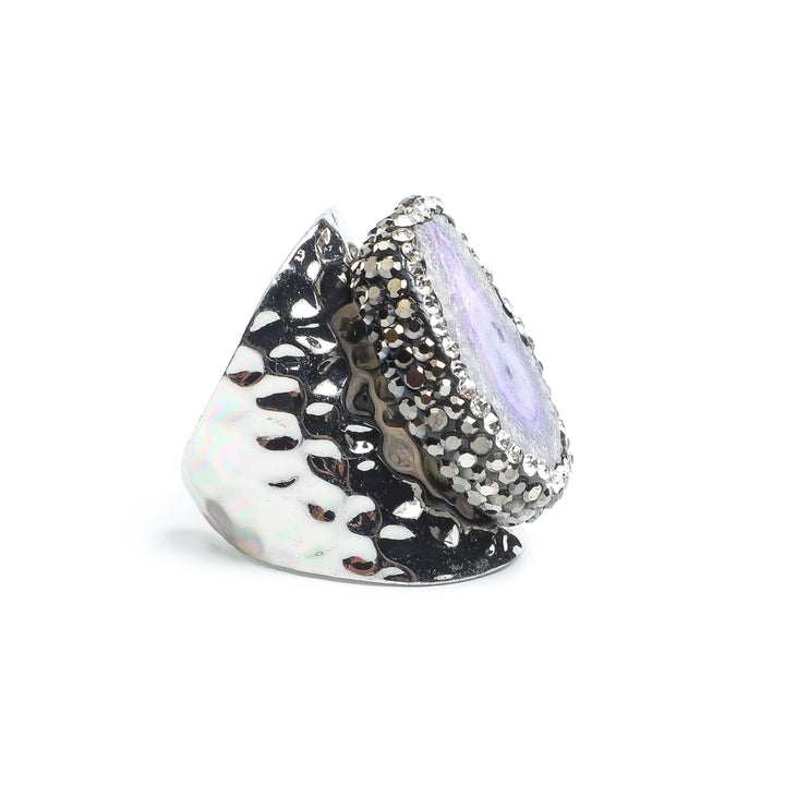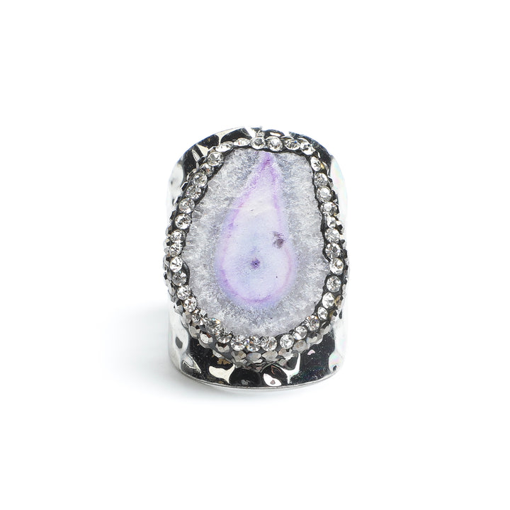 ARTLUMINNA presents the Purple Sands Ring, an artistic interpretation of desert sands in perpetual motion. Finely layered amethyst and purple chalcedony from Brazilian mines create a mesmerizing illusion of flowing sand dunes, captured in a seamless band that symbolizes life's constant evolution. Each delicate stratum tells a story of geological transformation, hand-set to preserve the natural gradient of violet hues. Traditionally associated with releasing attachments and embracing change, this ring is believed to encourage emotional flexibility and mental clarity. Wear it during periods of transition, creative exploration, or daily meditation, allowing its fluid patterns to remind you that growth often comes from learning to flow with life's currents.