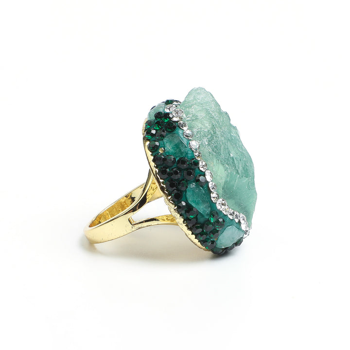 An Asian artist's tribute to primal beauty finds raw expression through master artisans' elemental craftsmanship, embodying ARTLUMINNA's philosophy of uniting organic forms with untamed elegance. This compelling ring features a raw Brazilian green quartz preserved in its natural crystalline formation, showcasing the stone's rugged texture and deep emerald hue reminiscent of untouched rainforest canopies. The uncut quartz specimen is thoughtfully set in a titanium framework that follows its organic contours, allowing the crystal's raw power to command attention. Senior artisans employed specialized setting techniques to secure the substantial specimen while maintaining its authentic, unpolished character. The raw green quartz is traditionally considered to carry vital earth energy and adventurous spirit, symbolizing nature's enduring strength and wild wisdom. Worn as a connection to the untamed world, this ring accompanies modern explorers in embracing their bold authenticity and maintaining their bond with nature's primal forces. The exclusive creation carries identification AL-RG-018.
