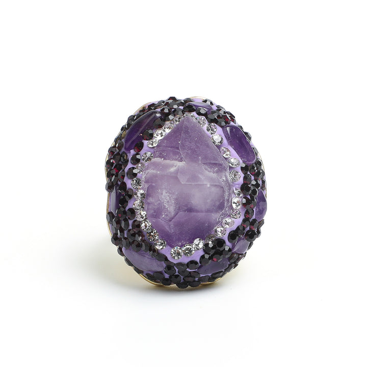An Asian artist's floral inspiration finds delicate expression through master artisans' sculptural craftsmanship, embodying ARTLUMINNA's philosophy of uniting organic beauty with poetic transformation. This enchanting ring features a Uruguayan amethyst masterfully carved into the graceful form of a violet bud, capturing the delicate moment before bloom with exquisite precision. The crystal's natural purple hue deepens toward the center, mimicking the subtle color gradients found in nature's most elegant flowers. Senior artisans employed specialized carving techniques to shape the soft, rounded contours of the petals while maintaining the stone's crystalline integrity. The amethyst bud is traditionally considered to carry gentle spiritual energy and creative potential, symbolizing the beauty of becoming and the promise of fulfillment. Worn as a tribute to nature's timeless elegance, this ring accompanies individuals in embracing their personal growth journey and recognizing the poetic potential within every stage of life. The exclusive creation carries identification AL-RG-013.
