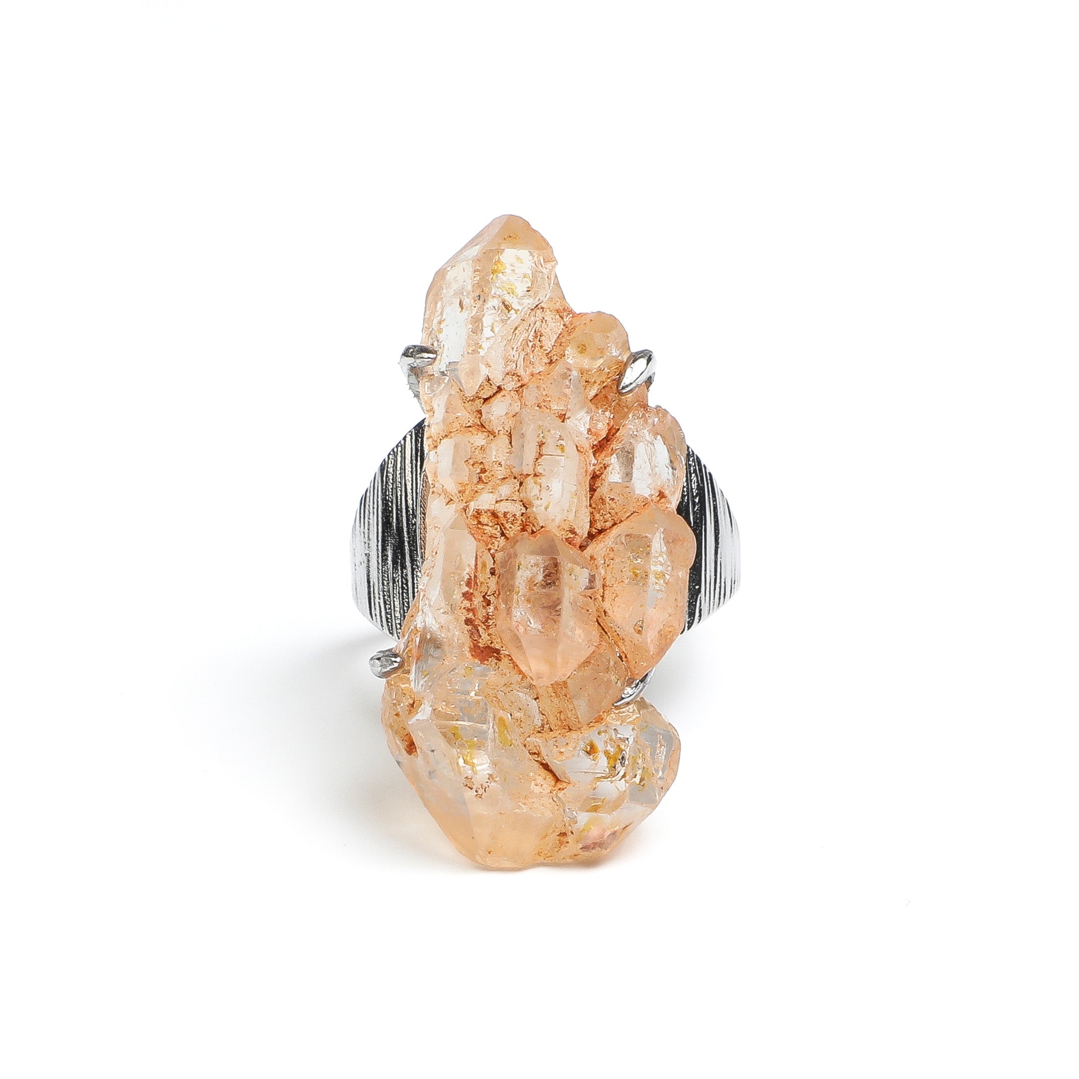 The piece embodies the concept of inner fortitude and personal sanctuary, where the castle formation symbolizes emotional resilience and the creation of sacred space within. The rich red tones carry earthy energy and connection to fundamental strengths. As part of ARTLUMINNA'sWorldly Wanderlust, this ring represents our founder's pursuit of minerals that blend natural architecture with profound symbolism, transformed through collaborative craftsmanship into a wearable piece that honors both the raw material's origin and its metaphorical significance as a personal fortress.