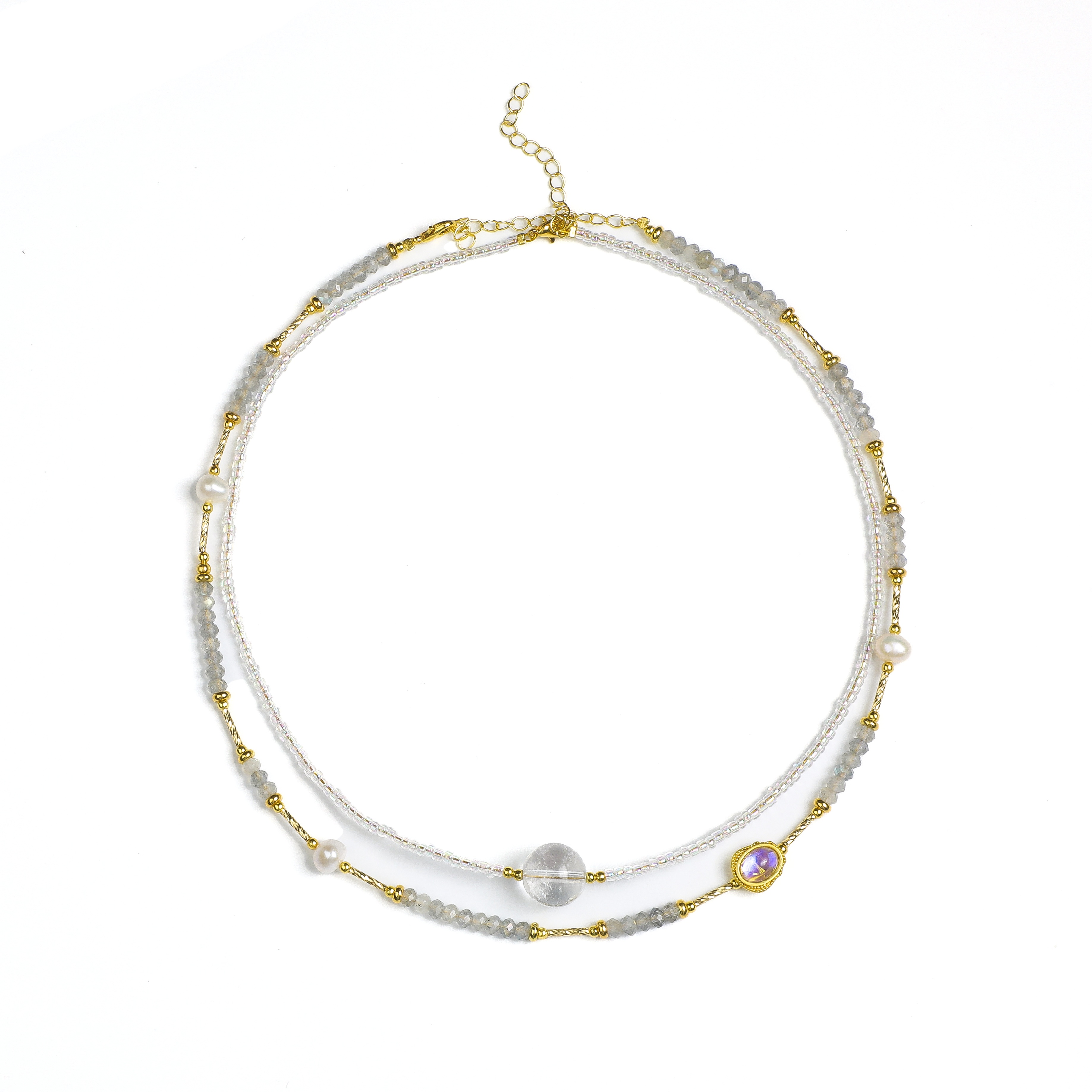 Zen Double-Strand Smoky and Amethyst Crystal Necklace