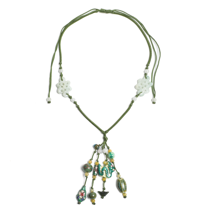 In Eastern tradition, ceramic represents nature and balance, with hand-applied glazes reflecting the philosophy of uniqueness. This piece complements everyday style, adding a serene touch to modern outfits. Each bead's glaze and texture are natural imprints of handmade artistry, making the necklace a unique wearable art.